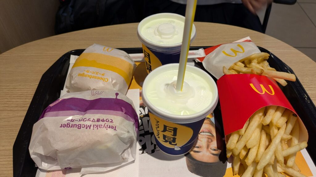 オイル交換の間に娘とマクド(関東と関西で呼び方が違う?)でランチ。シェイクが期間限定のシャインマスカット味。個人的にはイマイチだった。
