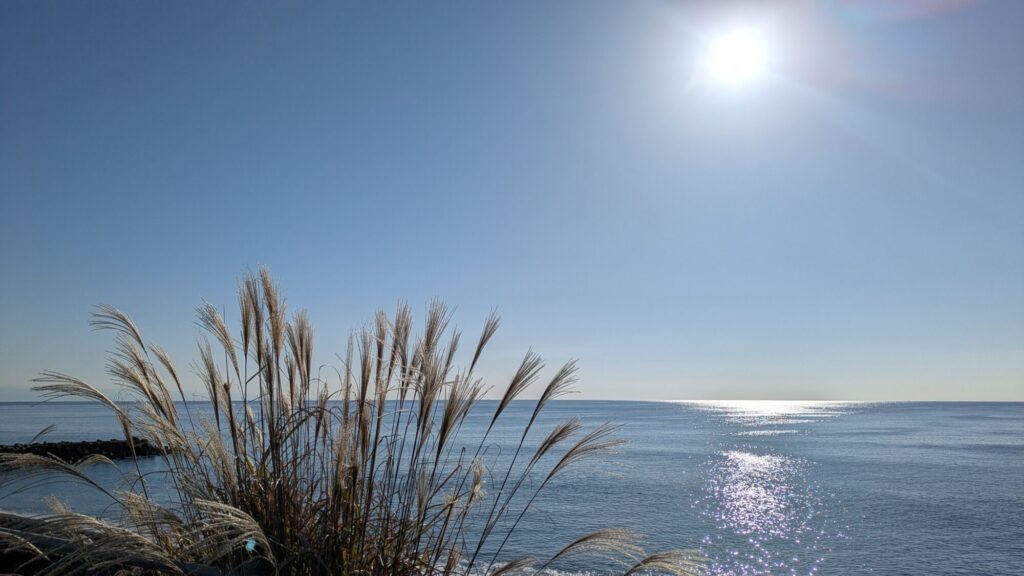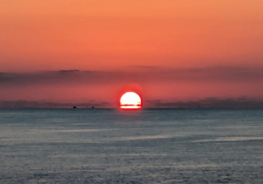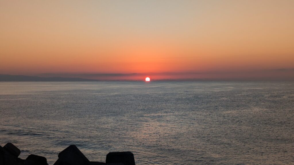 7時前の高知市から見た太平洋の様子。気温7℃。北風が少し強く冷たい。
