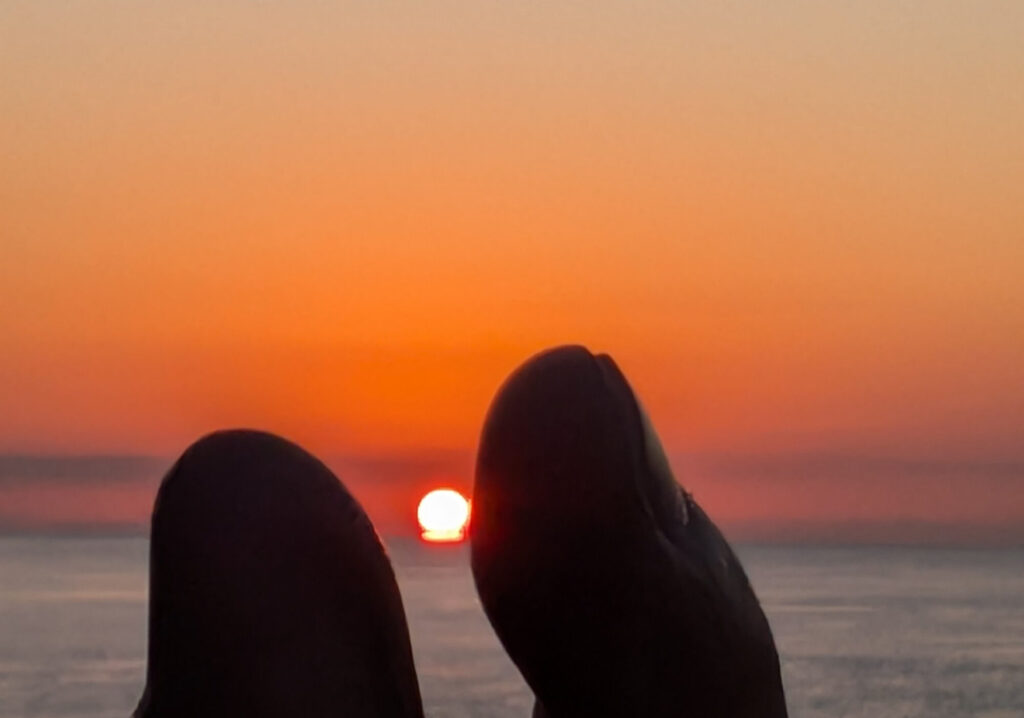いつもは海岸に降りてセルフィーを撮るのだが、釣り人の数が多くてとても撮れない。(怪しい行動で不安にさせたくない)