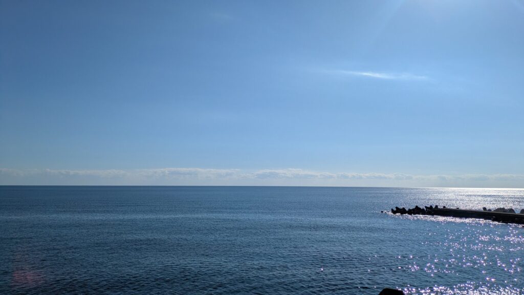 午後1時半頃の高知市から見た太平洋の様子。気温13℃。風がチョイ冷たい。