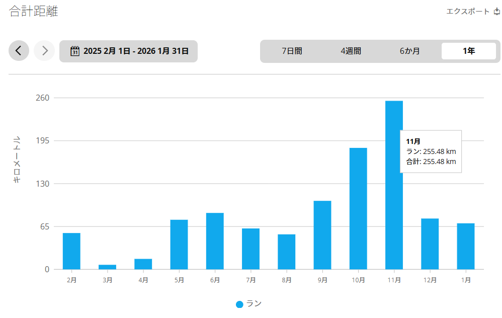 11月は250kmもは走ったのに、先月は右ふくらはぎを月初に故障して約3週間の休養で77kmしか走ってなかった。今月はチョー大事になる。