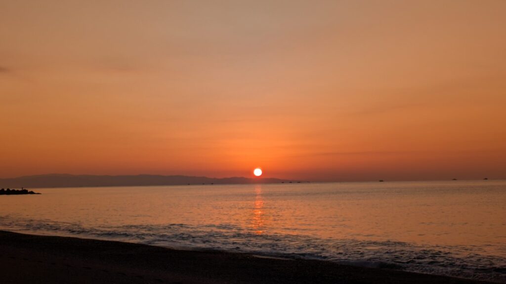 7時前の高知市から見た太平洋の様子。気温4℃。風はは微風だが、海沿いなので寒さを感じない。