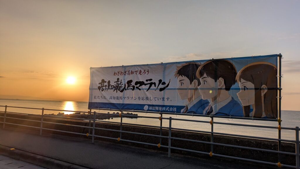 ここは龍馬マラソンでもコースにあたる海岸沿い。ジョガーも数人ですが走ってました。明日はここを1万人近くがいろいろな思いを抱きながら走ると思うと感慨深い。