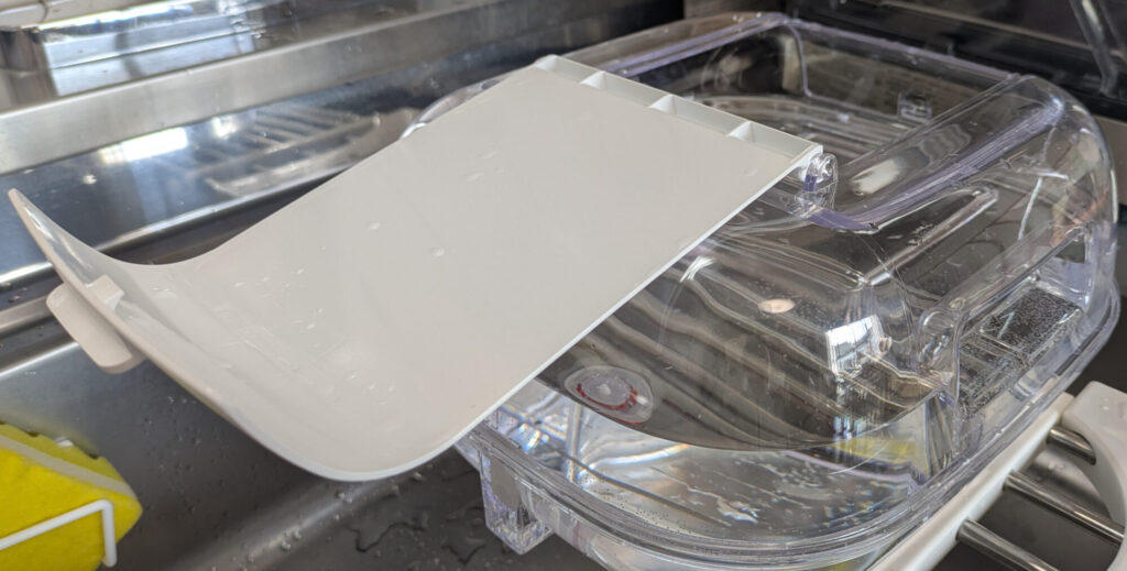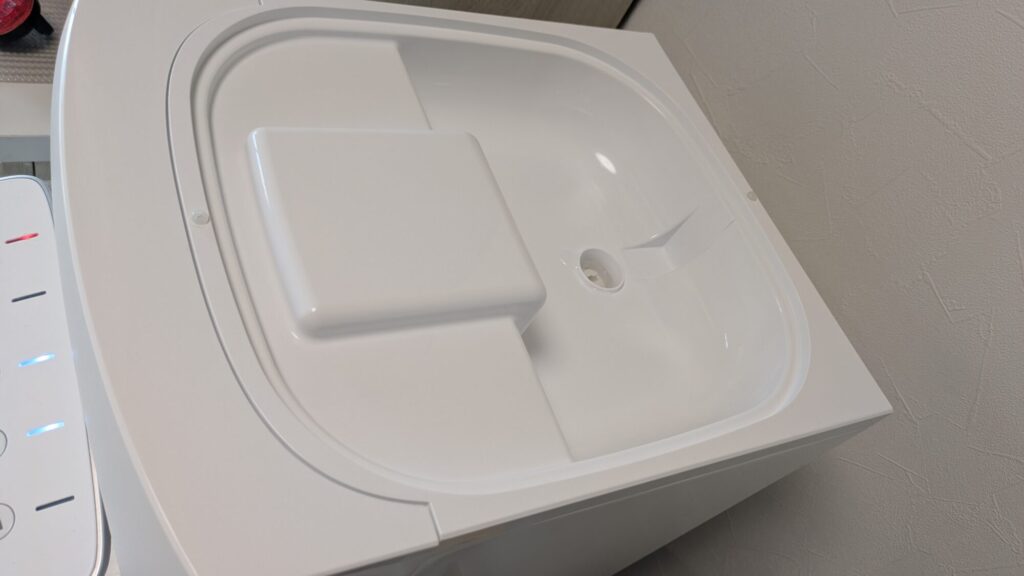 三日に1度は清掃してくれと書かれてるので、水曜と日曜に外して洗ったりウェットティッシュで拭いたりしてる。タンクを洗う時に蓋がデカいしモロそうだし扱いに気を使う。(乾燥機に入れていいのかわからんから自然乾燥してる)