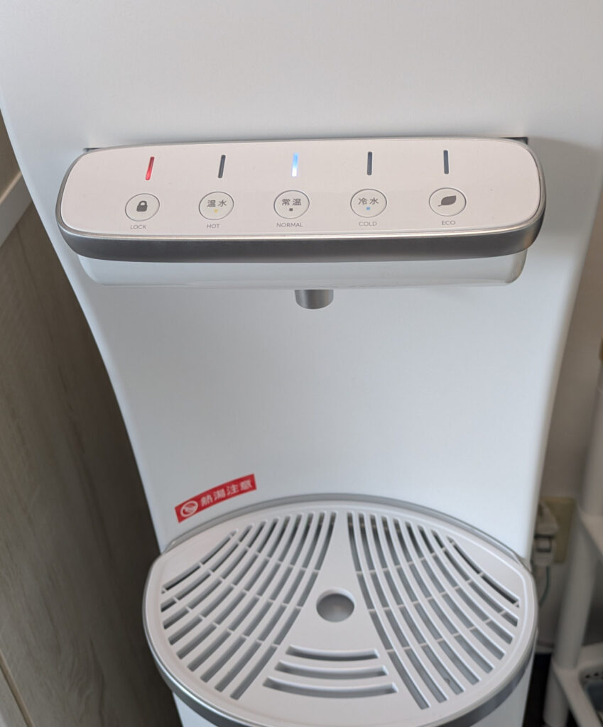 温水は左端のロックを長押しで解除し、押してる間だけ温水がでる。これが時々、間違ってしまう(常温でも押しぱなっししてしまう。おじさんだから?)