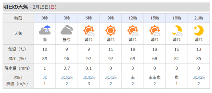 ちなみに明日の天気予報は