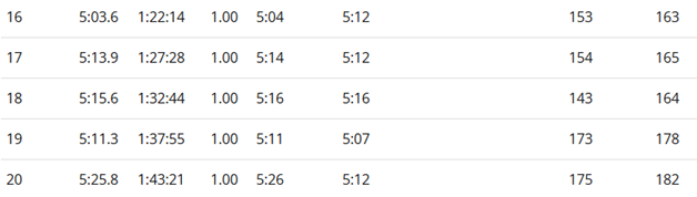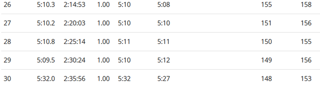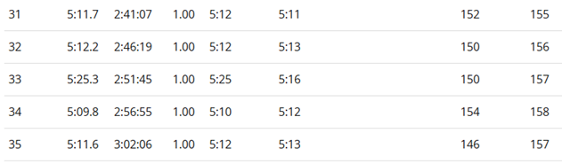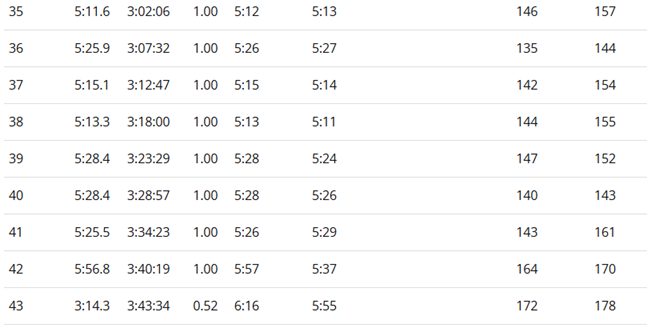 35kmで脚は棒みたいになってきたが、心肺機能には余裕を感じる。ログを見てみるとむしろ心拍数が76%に下がってる(いいんだろうか?)