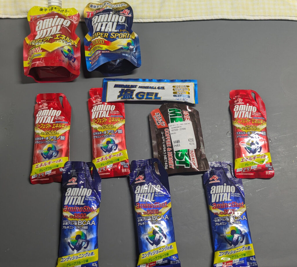 上段にあるビックサイズの赤はスタート1時間前に飲む。青は30分前に飲んだ。