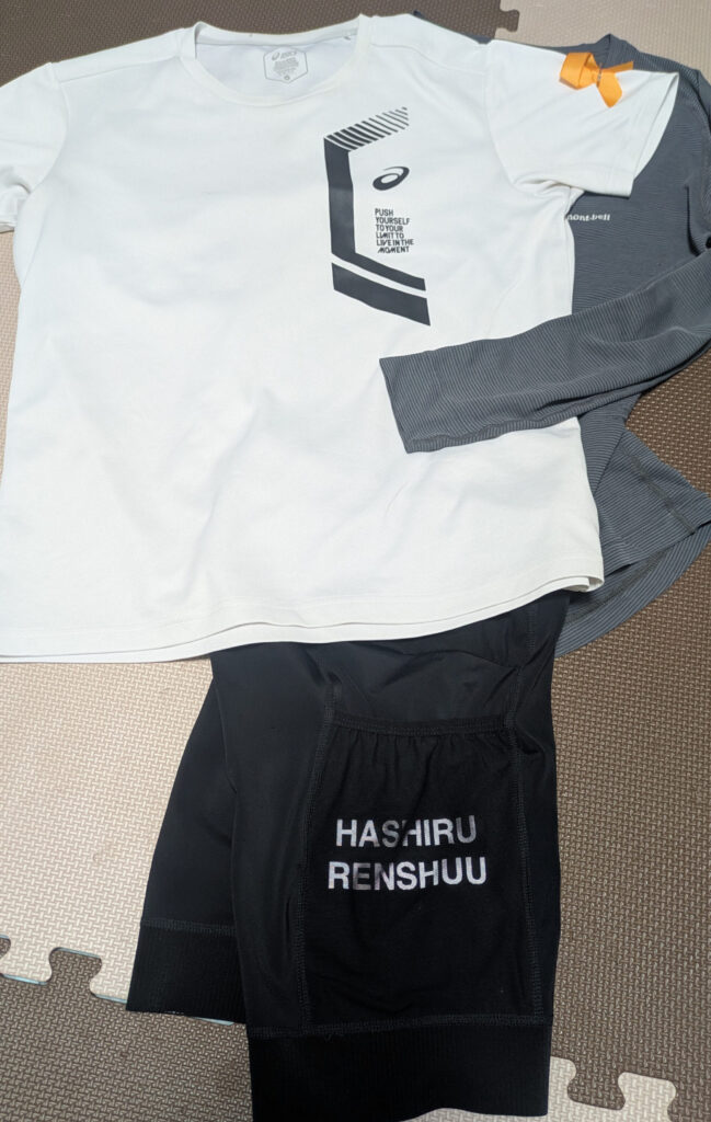 20℃近くになるのでインナーウェアを着るかかなり迷ったが、寒がりなので着ることに。(インナーウェアは10年以上前に買ったモンベルのウルトラライト)靴はアシックス S4+yogiri