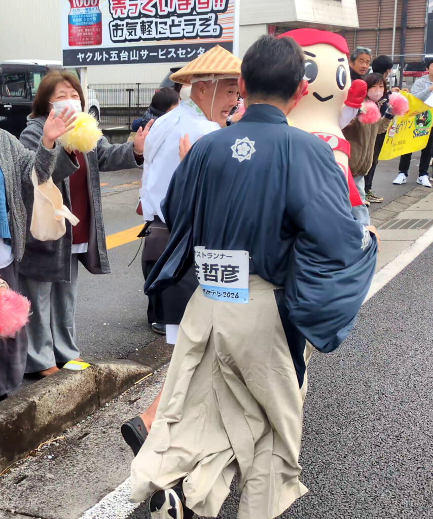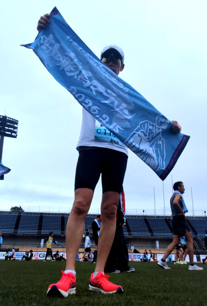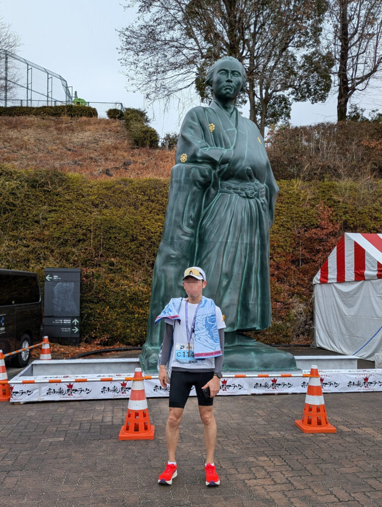 ゲストランナーの金さん。なんと竜馬を模造して紋付き袴(たまるかー)今回は、ハーフで残りはインフルエンサーの志村さんらしい