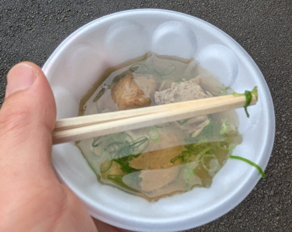 去年は食欲が全くわかなかったのでスルーして帰宅したが、家族のため?に参加選手に無料で振舞われるツミレ汁を頂く。