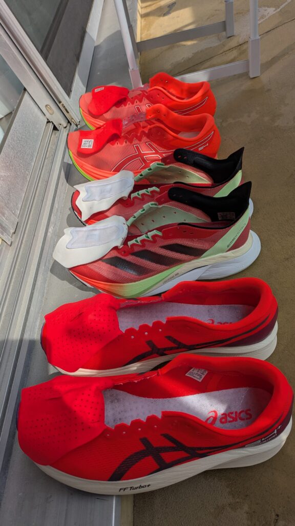 今回、新たに導入したファイテン パワーテープX30。これは箱根駅伝の選手たちが、脚はおろか首や顔までにベタベタ張ってたので、筋肉痛や故障個所に普段から使用してた。自分は腸腰筋と骨盤横あたりに数枚張った。