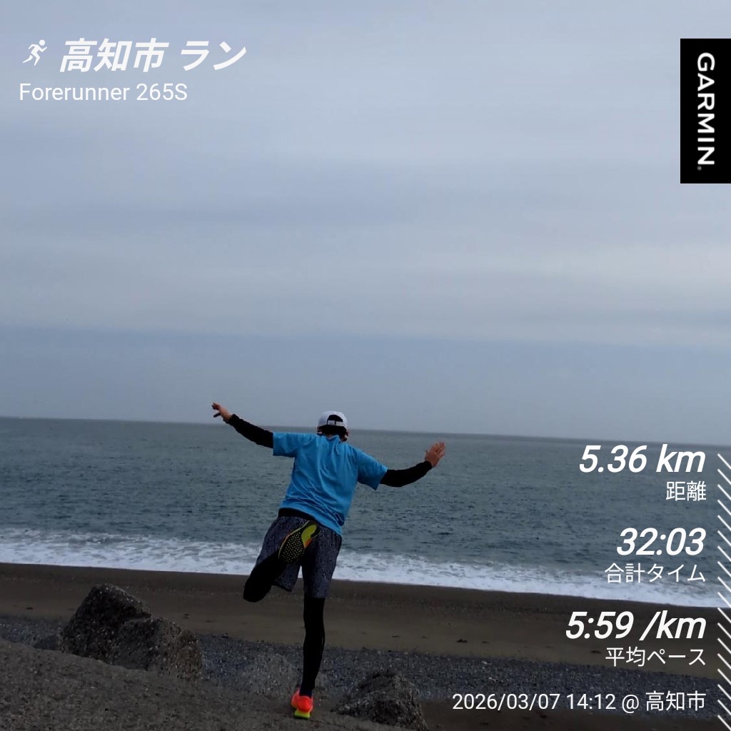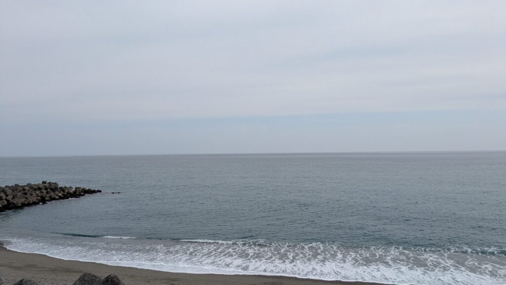 14時過ぎの高知市から見た太平洋の様子。気温12℃。風はややあるが走る分には暑い。