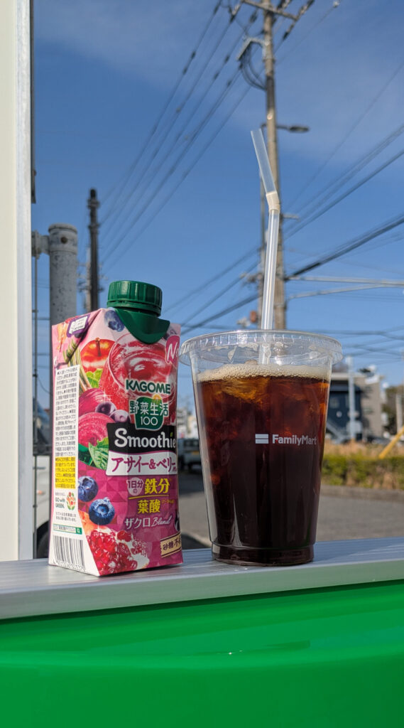 走り終えた頃には晴天に。ファミマのアプリクーボンでお得に飲み物をゲット。飲みながら帰宅