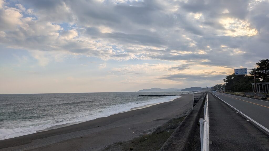 いつもの花街道を走りますが、波の音がデカいので音楽を聴くのをやめて(オープンイヤーだと波の音しか聞こえない)自然の音を楽しみながら走ります。