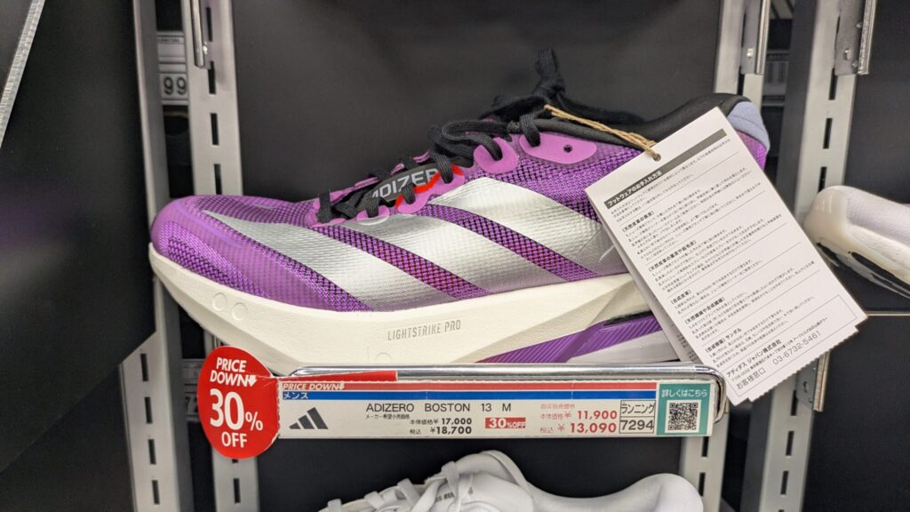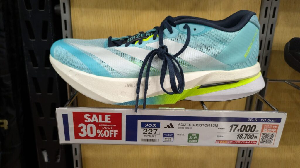まずはスポーツデポさんへ。本命のボストン12の後継であるボストン13があったが残念ながら自分サイズが無かった。
