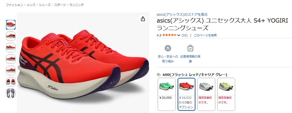 練習でメインで使うボストン13が欲しいが、フィッテング出来なかったので、とりあえずAmazonでS4+Yogiriの全く同じ色のシューズを注文した。(後悔はしていな)